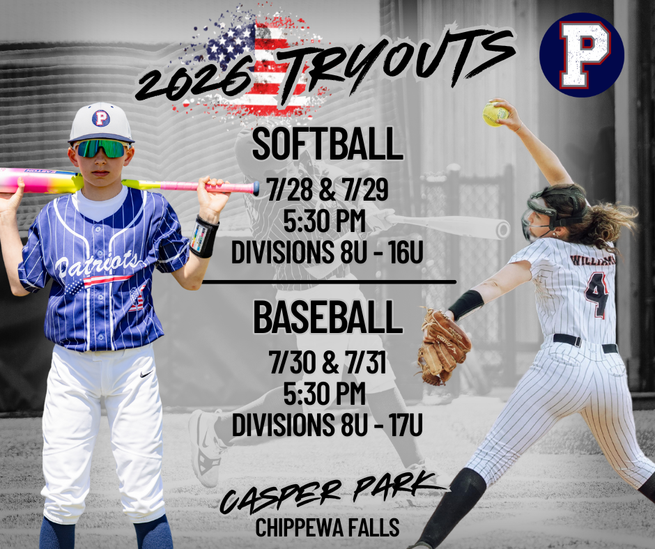 The Chippewa Valley Patriots Fast-Pitch Softball League is excited to announce upcoming tryouts for the upcoming season! We’re looking for dedicated, hardworking athletes who are passionate about the game and ready to compete at a high level. Tryouts are open to players of all skill levels who are eager to grow, learn, and be part of a supportive, team-first environment. This is a great opportunity to showcase your talent and join a program that values development, sportsmanship, and competitive spirit. Come ready to give it your all—we can’t wait to see what you’ve got!